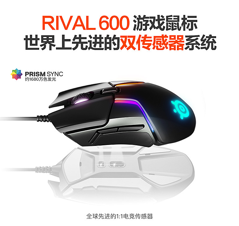 Rival 600是专为FPS游戏打造的旗舰游戏鼠标,采用赛睿独家TrueMove3+双传感器系统,在保证真实1:1追踪准度的同时,可对鼠标抬起操作做出准确判定,大幅降低游戏中转身等操作下的准星偏移,让玩家在FPS游戏中表现更加出色。