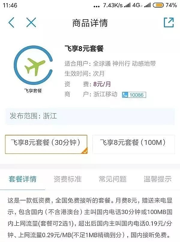现在又有网友发现中国移动营业厅App在浙江、福建、贵州、广东、黑龙江、河北等多地区上线了8元飞享套餐,均赠送来电显示,包含国内(不含港澳台)主叫国内电话30分钟或100MB国内上网流量(套餐可2选1),超出后国内主叫国内电话0.19元/分钟、上网流量0.29元/MB,国内接听免费。用户可以咨询办理。