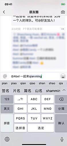 操作很简单,在收到朋友圈广告后,用户在评论区点击评论框左侧的“@”符号,即可@微信通讯录里的好友,与好友实时互动。
