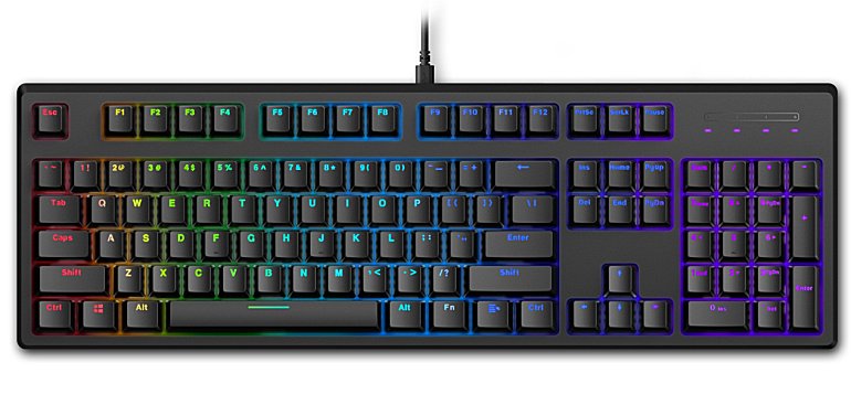 V808RGB采用全键无冲突设计,拥有配套驱动软件,板载内存支持大容量宏定义存储,104键驱动可编程,支持玩家的个性化设置,大大提升了V808RGB的个性可玩性。
