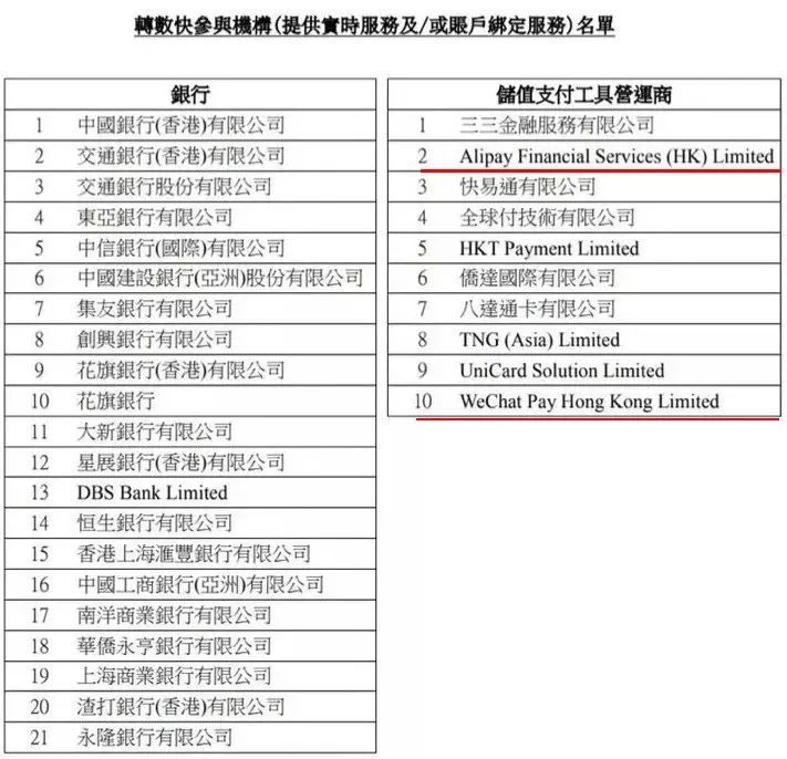 据悉,“转数快”是由香港本地 21 家银行和 10 家支付运营商组建而成的一套新的快速支付系统。使用者可通过这套系统随时随地进行跨行和跨储值支付工具的即时资金转账。这并不是一个独立的APP,该功能内嵌于银行和支付 App 的应用接口。