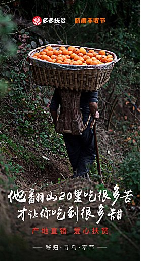 从11月开始,全国多个脐橙产区开始轮流丰收,收获季将持续到明年4月。为了帮助贫困地区农户加速销售,提升原产地农产品知名度,拼多多走进湖北秭归、重庆奉节和赣南寻乌三个国家级贫困县,联合地方政府和平台新农人商家推出“多多扶贫-脐橙丰收节”,一端让贫困户有产就有销,丰产也增收;一端让城里的老百姓用超低价享受新鲜优质脐橙,这也是拼多多在扶贫模式上的新探索。