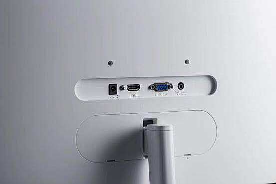 显示器出了自带底座支架之外,背面保留了VESA壁挂孔,无论是将显示器放在桌上还是挂在墙上都行。虽说产品只提供了VGA+HDMI的视频接口组合,对于一般家庭用户来说完全够用了。