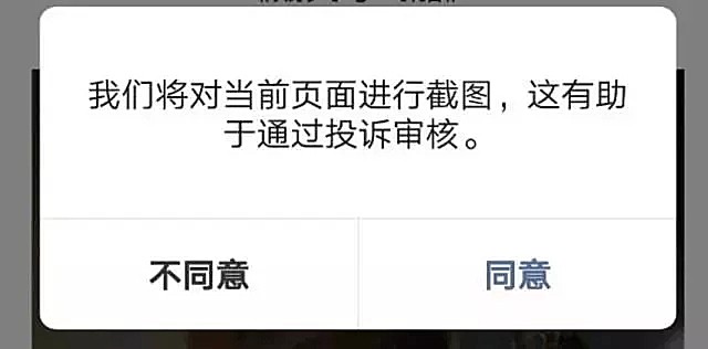 但在微信 7.0.4 for Android 内测版本中,点击投诉,微信就会提示你,应用将会对页面进行截图,用户可以选择同意或不同意。