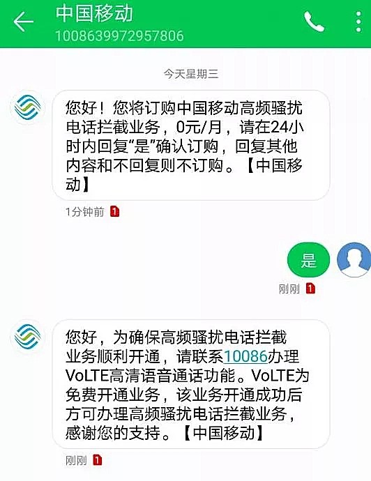 如果你是移动用户,而且刚好在测试区的话,可以考虑开通移动的防骚扰业务。“绿盾”防护是中国移动旗下的高频骚扰电话呼叫拦截服务,采用云端拦截技术,无需安装app,为用户提供骚扰、诈骗电话拦截服务。可以帮助用户屏蔽一些被其他用户“点名”的骚扰电话,甚至可以让你自己定义不同的骚扰电话或者诈骗电话。