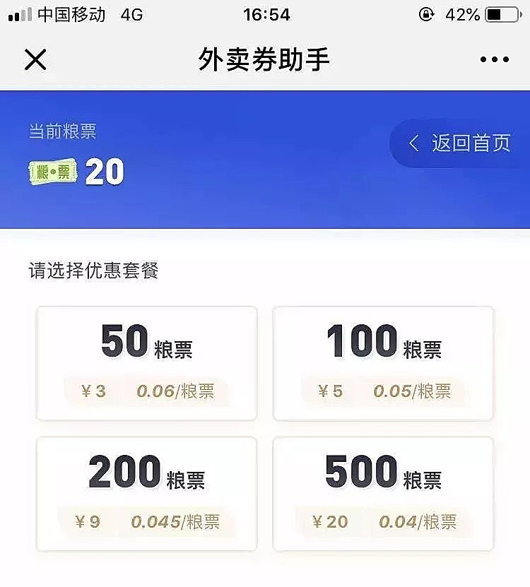 当然,这一服务并非免费,需消耗10“粮票”,而该公众号充值粮票的价格是50粮票3元钱,算下来是0.06元/粮票。也就是说,你花费0.6元钱,可以获得了最大红包。