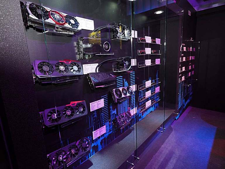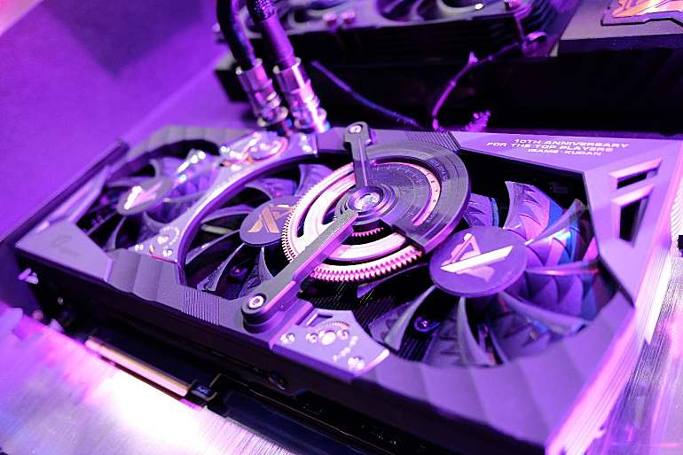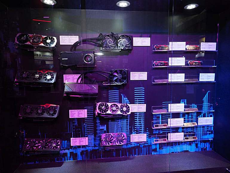 自十周年升级以来,显卡系列产品由经典的“烈焰战神”、“冰封骑士”升级为Vulcan(火神)、Neptune(水神)两大系列,其中玩家最耳熟能详的当属Vulcan“伏尔甘”也正是因为最新的Z390主板以及iGame首款内存条也是同样属于该家族,也是目前最壮大的系列产品,在展台上我们看到了目前全系列的显卡产品陈列,这其中也包括了传统风冷显卡和一体式水冷作为散热方案的显卡,其中包括了iGame系列进一步细分出的Advanced、Ultra、Customization(定制系列,如:RNG战队定制款显卡、主板),当然还有凌驾在这一切之上的卡中王者Kudan旗舰。