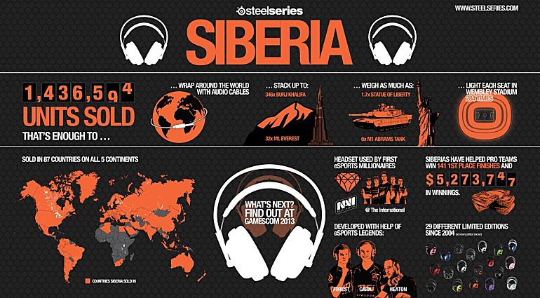 同样是在2007年,赛睿综合了职业游戏玩家、DJ及摇滚歌手的建议,打造出配备全尺寸开放式耳罩和可伸缩“隐形”麦克风的西伯利亚后挂式耳机。超大尺寸的织物耳罩带来极致舒适体验,西伯利亚系列引人注目的视觉设计使耳机外型更独具特色。在当时风靡一时,全球的各大电子竞技赛场上都能看到西伯利亚后挂耳机的身影。