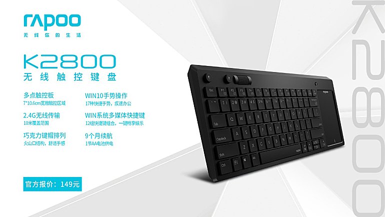 多点触控板、WIN10系统17种手势操作,2.4G无线传输,独立鼠标按键,多媒体快捷键,9个月续航时长…K2800无疑是当下智能娱乐/办公设备的首选外设搭档,现上市诚意价仅149元,感兴趣的朋友千万不要错过。