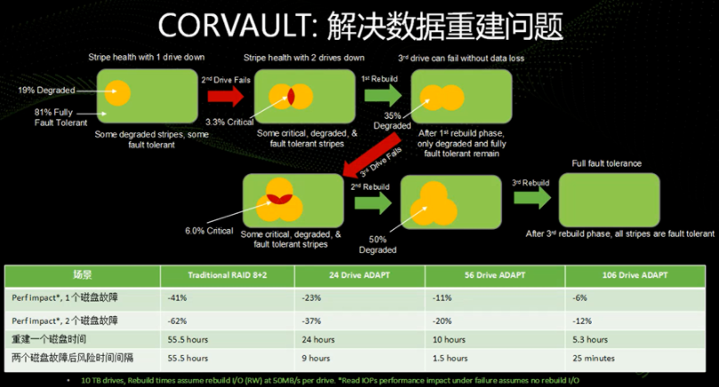 此外,Corvault由自动磁盘再生(ADR)技术构建,支持即时自我纠正,无需手动更换,便可原位更新硬盘。即使在高压使用环境下,它也能获得峰值状态下的硬盘性能和耐用性,最大限度提升数据密度,减少电子垃圾。