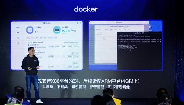 值得关注的是,极空间还发布了新的功能——docker,正如创始人袁斌所言,用户需要什么,我们就做什么。简而言之,docker是一个开源的应用容器引擎,让开发者可以打包他们的应用到一个可移植的镜像中,然后发布到任何流行的 Linux或Windows操作系统的机器上,也可以实现虚拟化,让用户有机会实现更多的可能性。