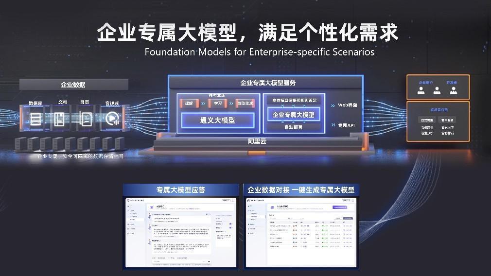 周靖人介绍,未来每一个企业在阿里云上既可以调用通义千问的全部能力,也可以结合企业自己的行业知识和应用场景,训练自己的企业大模型。比如,每个企业都可以有自己的智能客服、智能导购、智能语音助手、文案助手、AI设计师、自动驾驶模型等。
