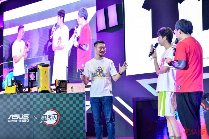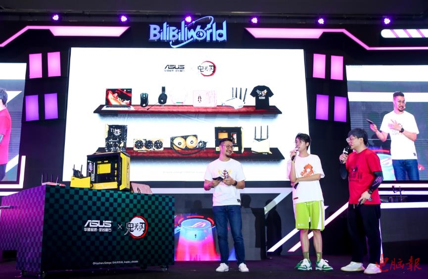 一片欢呼声中,华硕电脑开放平台中国区总经理俞元麟先生(B站ID“普普通通TONY大叔”)携手两位嘉重宾——主持人wAwa闫紫境&中国BOY超级大猩猩重磅登场,为各位小可爱们带来了时下最热门顶尖动漫IP鬼灭之刃联名和经典动漫IP高达联名的新品。