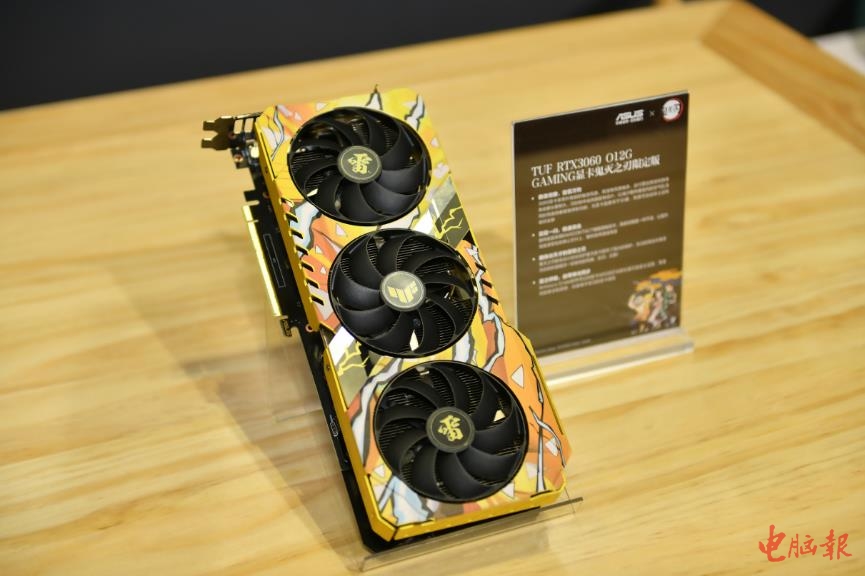 显卡是定制版的TUF RTX3060 O12G GAMING鬼灭之刃限定版显卡,全金属外壳与3把双滚珠轴流风扇的搭配,不仅保障了显卡高负载运转状态下的散热需求,还能提供0dB静音技术,助力玩家们收获更舒适的畅玩环境。