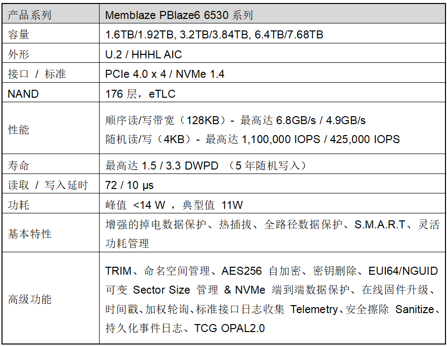 Memblaze PBlaze6 6530 系列 PCIe4.0 NVMe SSD