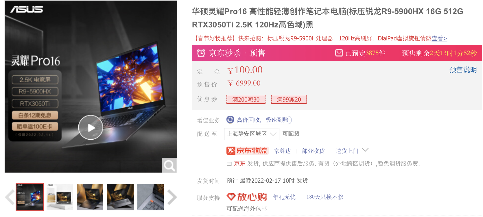 该产品于2022年2月11日在京东开启预售,更有12期白条免息和晒单返E卡等多重好礼为你传情达意,祝你和TA的感情虎虎生威开启新一年!如果想要入手不同颜色,还可以选择同系列的灵耀Pro14 流星白,轻巧出众。