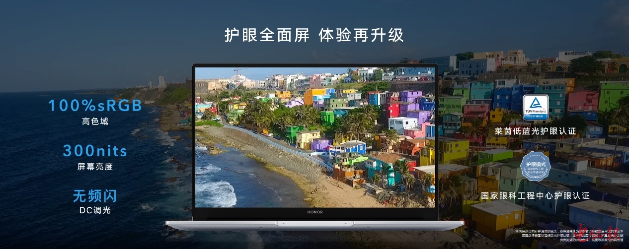 现代生活加剧了用眼问题,全新的荣耀MagicBook14/15锐龙版屏幕再次升级,均采用了1080P分辨率的防眩光IPS雾面屏,显示效果更加细腻,同时100%sRGB高色域的加持,以及300nit亮度,让整个屏幕的色彩更加饱满,能够真是还原我们生活中的各种色彩,不论是P图还是观影,都能带来绝佳的视觉体验。