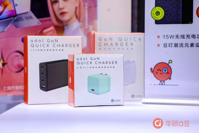 除了三款数码产品,展台上还放着多个a豆氮化镓快充充电器,它采用收纳式插脚设计,不用担心包内物品被划伤。100W氮化镓快充充电器有着潮流的撞色设计,3C1A接口配置,可以同时为电脑、手机、耳机等多个设备提供充电,只需一个插头即可满足需求,无需拥挤的排插,100-240V宽电压,适用于不同国家地区的输入电压规范,出差旅行更加便捷。
