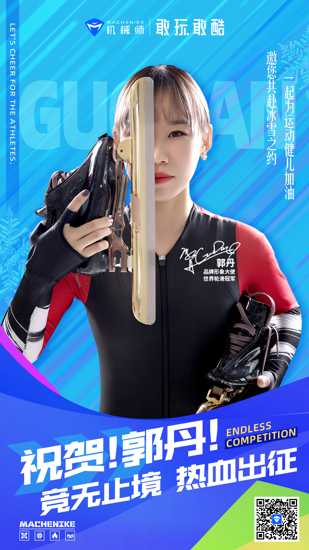 因热爱扬帆起航,用实力全速出征!在北京冰雪运动盛典来临之际,机械师品牌形象大使郭丹凭借坚持不懈的努力与强劲的实力,成功进入速度滑冰集训队,从轮滑三大满贯世界冠军,到冰轮双栖,郭丹用行动出色的为大家展示了什么是敢跨界、敢玩酷、敢拼搏的精神!