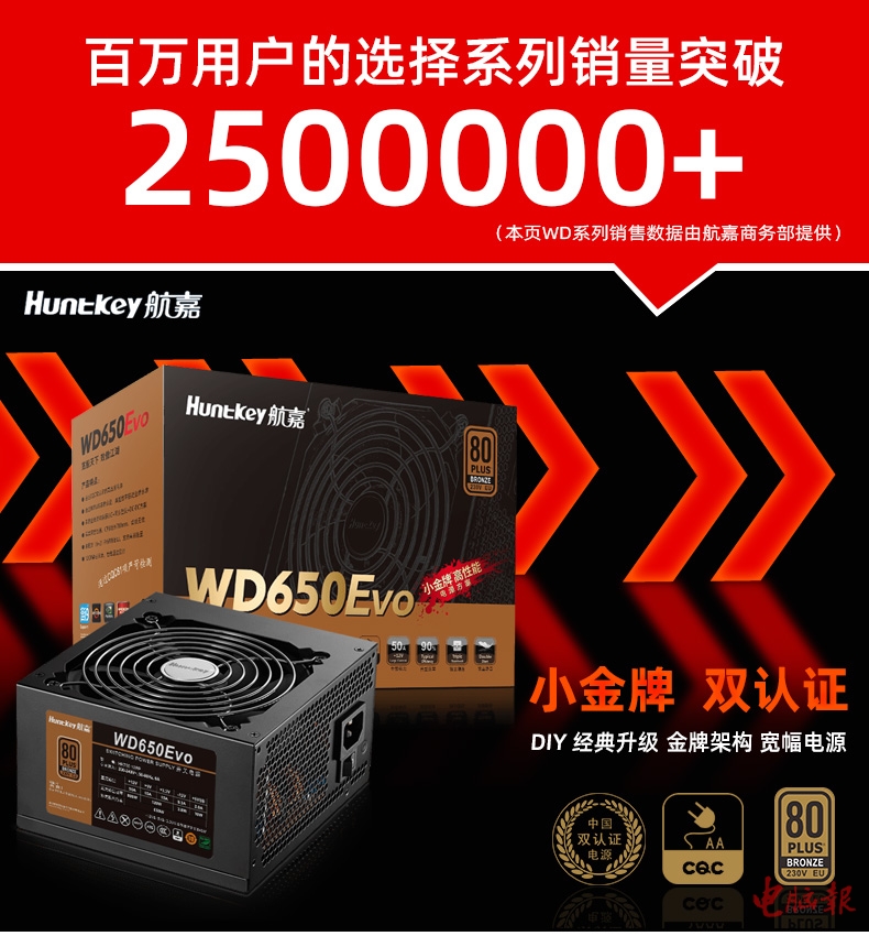 航嘉WD650Evo双认证+80PLUS铜牌电源