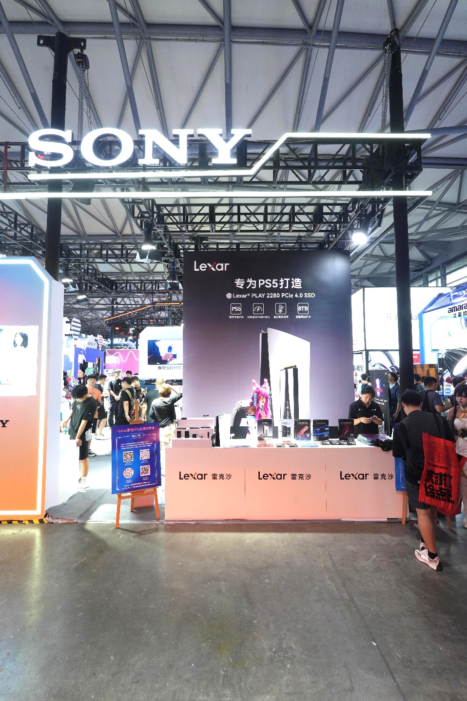 与索尼合作的展区,带来专为PS5而生的PLAY 2280 固态硬盘和专为掌机扩容的PLAY 2230固态硬盘,聚焦次世代游戏主机PS5与掌机的极致体验。