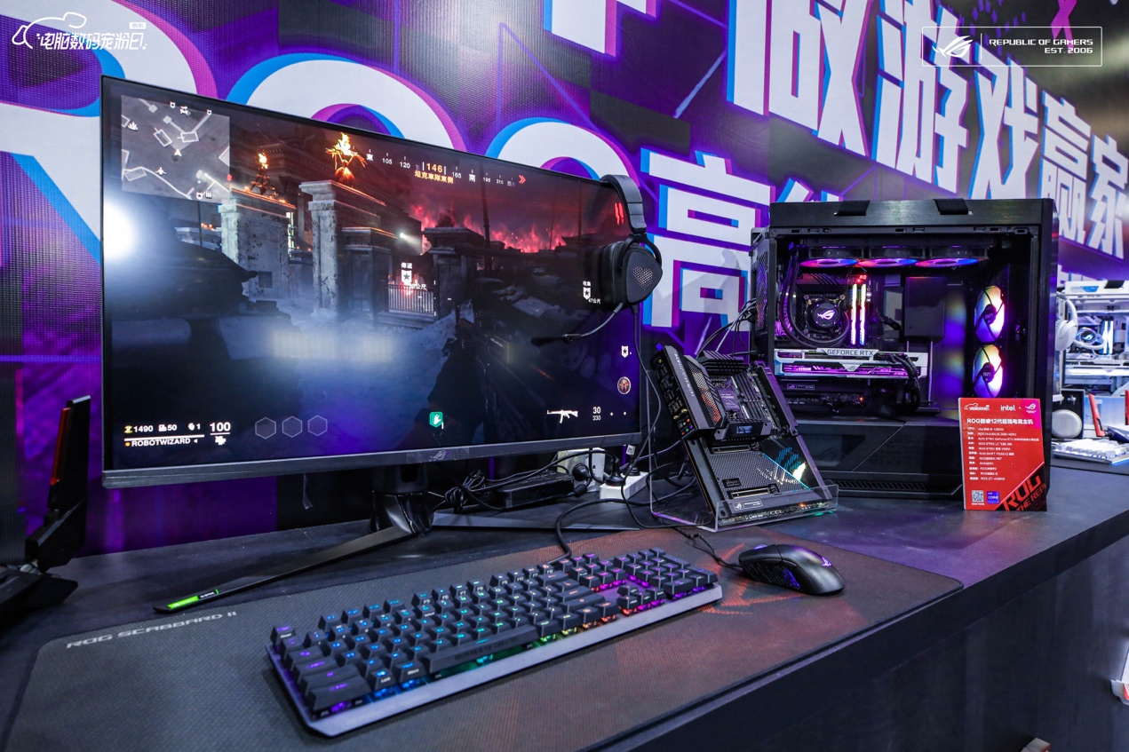 RO姬互动区展出两台分别以黑、白色调为主的ROG全家桶,并搭载有《永劫无间》、《使命召唤:先锋》等人气大作,吸引众多电竞玩家一展身手。《永劫无间》是一款结合刺激的吃鸡玩法和国风要素的武侠风多人竞技游戏,拥有着出色的战斗机制,有趣的博弈论设计思路,宏大壮丽的地图美术设计,博得全世界玩家的青睐;《使命召唤:先锋》以第二次世界大战的欧洲和太平洋战场为背景,剧情围绕现代盟军特种部队的诞生展开,供玩家体验二战中最具影响力的战斗。而好的游戏体验离不开好装备的助力,现场两台体验机采用最新华硕Z690主板搭配第12代英特尔酷睿处理器,超强战力BUFF加持,让玩家充分发挥精湛操作,制霸战场!同时,还有黑白RO姬真人COSer随机出没,快来捕捉她们的靓影!