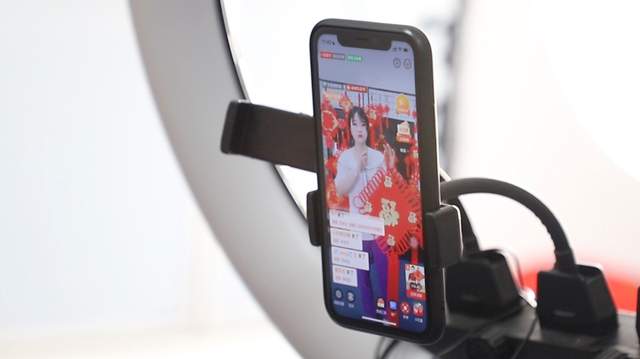 “新新精艺”店铺直播中,主播在销售之余,还会讲解中国结相关历史。 谷守勤 摄