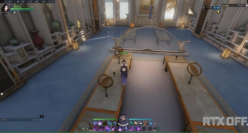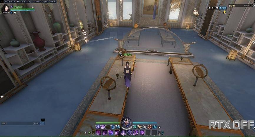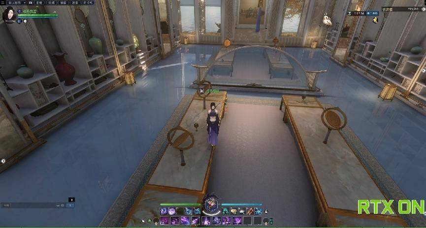 在去年底的版本中,《逆水寒》又加入了新的光线追踪效果——RTX GI全局光照技术,它是英伟达发布的使用光线追踪实现的全局光照渲染技术,为计算多次反射形成的间接光照效果提供了灵活的解决方案。通过和汴京NPC“李儒”的交谈,我们便可以进入为展示RTX GI技术特别制作的场景“右文殿”。在这里,玩家可以感受到全局光照带来的生动画面效果。