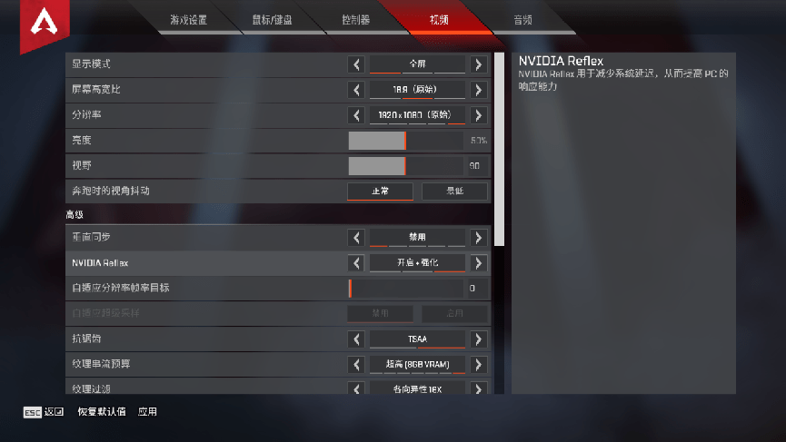在《APEX》中,提供了“关闭”、“开启”和“开启+强化”三种NVIDIA Reflex状态。同时,玩家也可以在NVIDIA GeForce Experience中的性能面板中,打开“延时”布局,这样就可以在屏幕设定的位置显示延迟数据。