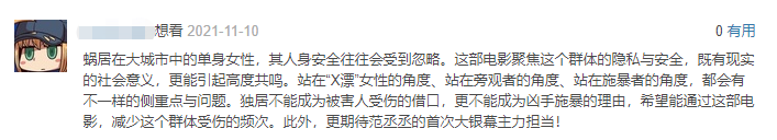 诸多的镜头,无不反映出了如今都市独居女性多多少少都面临过的一些真实的安全境况。难怪在豆瓣的《门锁》预告片的评论下,有网友评论说: