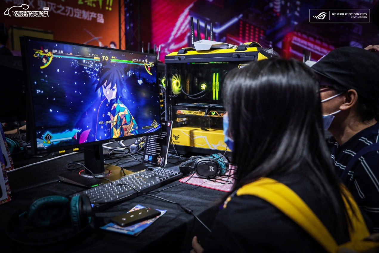 华硕始终秉承“以玩家为中心”的理念,敏锐洞察行业趋势,与顶流IP鬼灭之刃强强联手,推出一系列联名产品。鬼灭之刃主题区内的鬼灭定制主机可谓是吊足了玩家胃口,场馆一开门便有众多粉丝蜂拥而至,摩拳擦掌跃跃欲试!