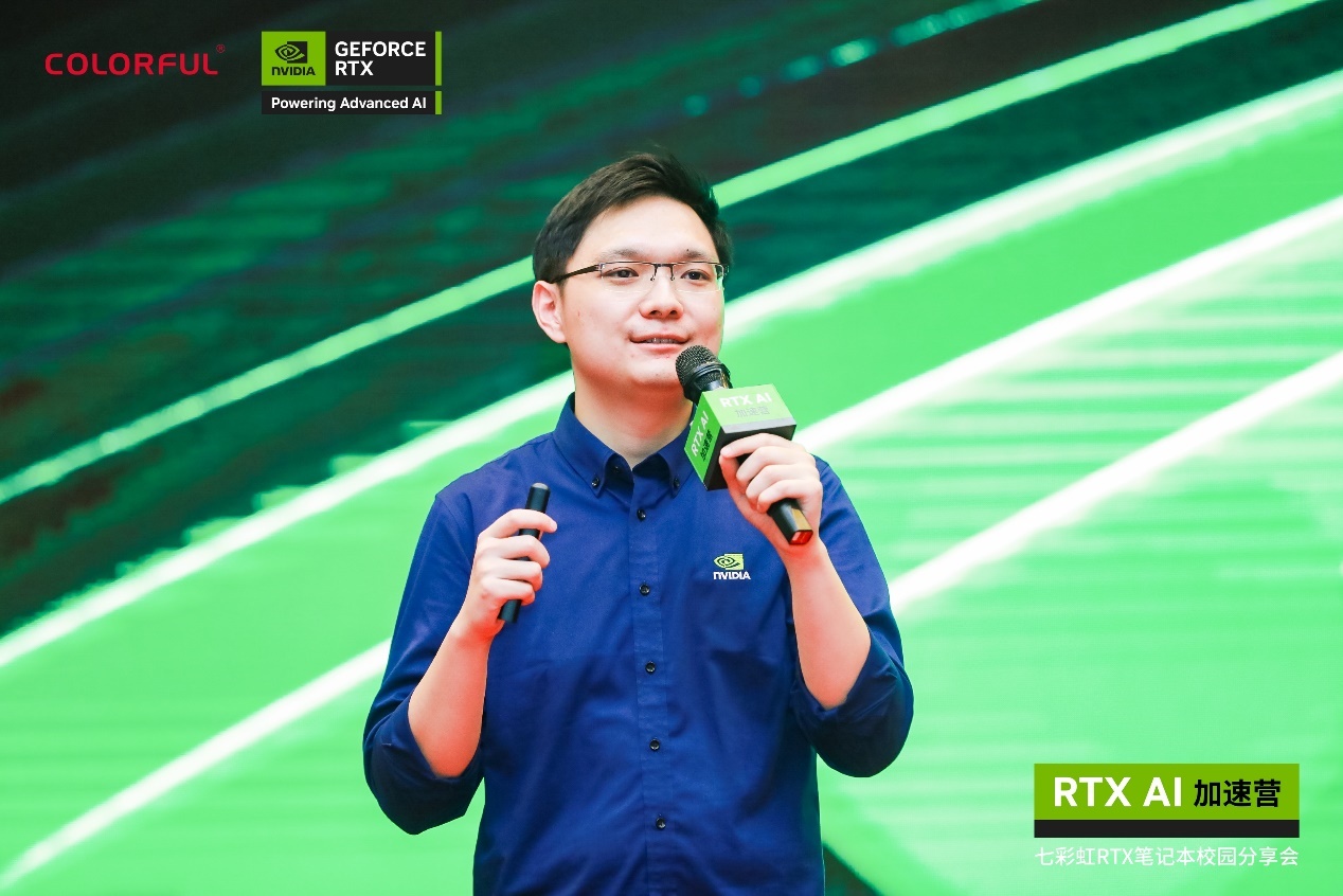 9月26日,七彩虹RTX笔记本校园分享会第二站在青岛大学浮山校区举行。英伟达中国区产品经理杨礼名先生作为特邀嘉宾,为在场观众带来了NVIDIA最新技术的深度剖析,内容涵盖了AI技术在图形处理、游戏优化等方面的应用。他还就RTX显卡在提升游戏性能、实现实时光线追踪等方面的优势进行了详细讲解,引发了现场观众的浓厚兴趣。