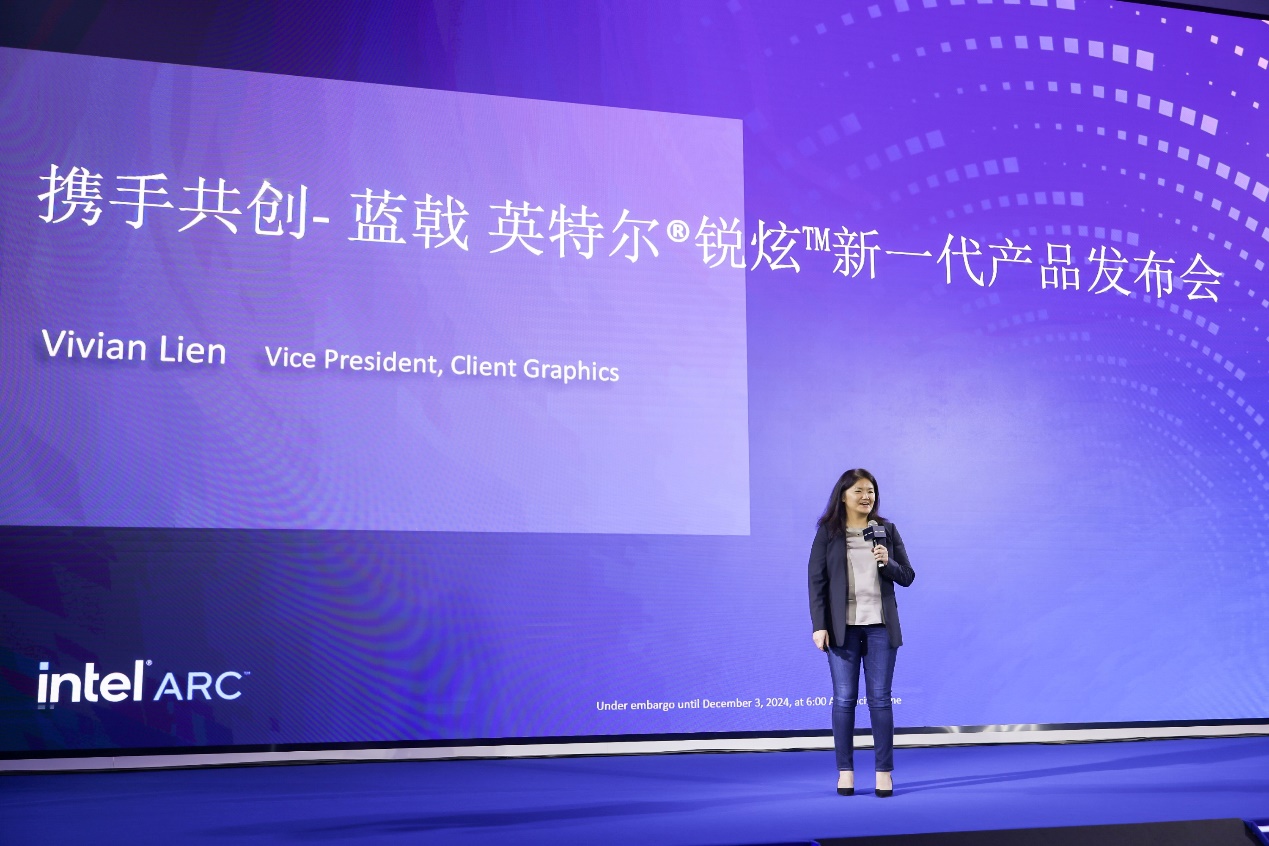 这一愿景得到了英特尔客户端显卡事业部副总裁Vivian Lien女士的肯定,Vivien强调了Intel在图形技术领域的持续投入和创新,介绍了即将推出的基于Battlemage架构的第二代锐炫B系列显卡不仅在硬件上有所突破,还通过不断优化驱动程序来提升兼容性和用户体验。