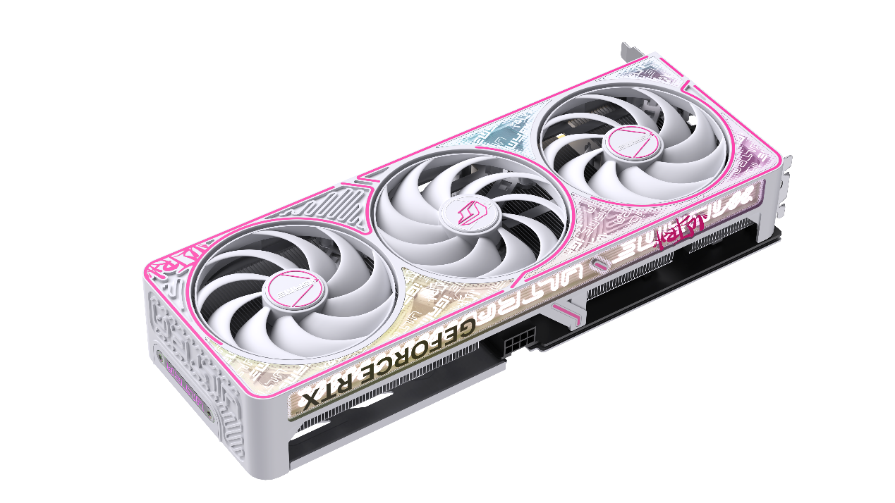 本次iGame RTX 5050新品开售也少不了“大眼萌”的双风扇版本iGame GeForce RTX 5050 Ultra W DUO OC 8GB。它以独特的“大眼萌”设计风格受到玩家喜爱,纯白底色搭配粉色镜框装饰,仿佛戴上了一副时尚眼镜,瞬间化身机箱里的可爱担当。