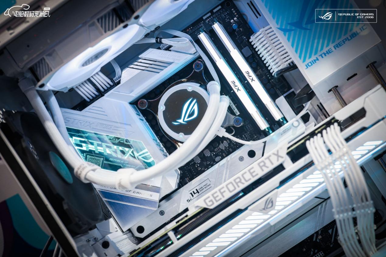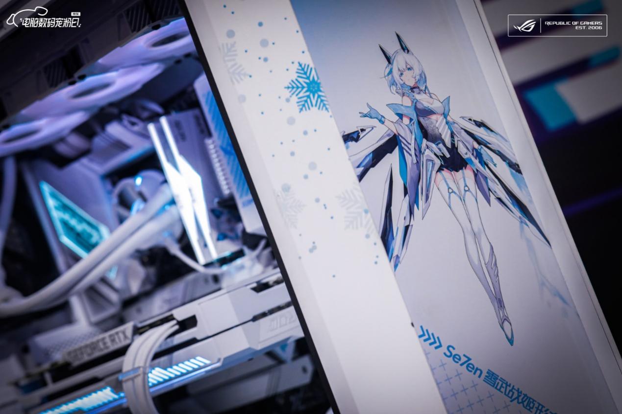 雪武战姬主题定制电竞主机是颜值爆表的ROG白色全家桶,已经实装最新的Intel第12代酷睿平台。