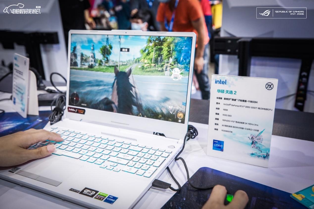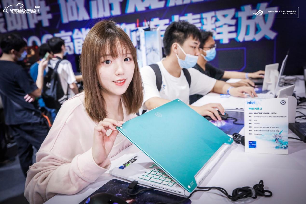 除了DIY硬件,在核聚变2021华硕展台,还为玩家门布置了充满二次元风格的天选姬笔记本体验区和ROG笔记本全家桶游戏区,让玩家们在这里能够体验到当下最流行的移动平台笔记本带来的强劲游戏性能释放。