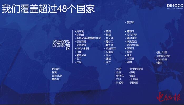 DIMOCO 主要业务分两类,一类是国际短信,一类是运营商直接计费(俗称:话费支付)。