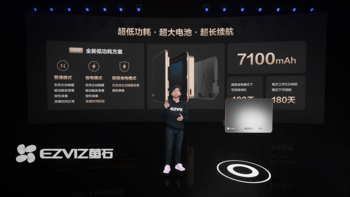 BC1是萤石智能家居摄像机家族的续航“怪兽”,其最大亮点就是配备了一块12900mAh的大容量锂电池,是目前业内电池容量最大的太阳能电池相机产品。BC1为用户提供三种省电模式,同时还支持搭配萤石太阳能电池板使用,真正做到无需充电即可长久续航。成像方面,星光级sensor搭配高解像力广角镜头,呈现1080P超清分辨率画面,内置补光灯,黑夜也能展现全彩画面。安装方面,BC1也做了大量的优化,四级充磁永磁体搭配专用磁吸底座,吸力强悍,搭配IP66防水防尘等级令其成为一款室内室外皆通用的智能产品。
