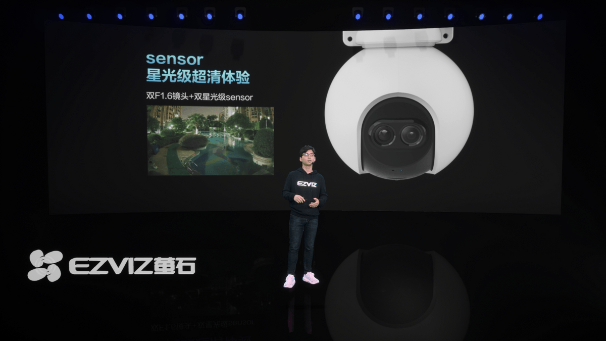 另外,针对远距离的安防需求,萤石推出家用摄像机领域的首款变焦产品——C8PF双目变焦摄像机。C8PF针对室外庭院、沿街场景设计,其最大的惊喜源于双目融合变焦技术的使用,搭载一颗12mm的长焦镜头与一颗2.8mm的短焦镜头,支持同步拍摄远景与近景画面,并通过双sensor融合,实时输出1X,2X,4X,8X四种200W无损变焦画面,用于解决远距离的人脸和车的观测需求。与此同时,C8PF的产品形态与传统室外云台产品有着巨大的差别,其弱化了传统监控摄像头的攻击性,凭借其精简的ID设计,获得2020年日本优良设计奖殊荣。