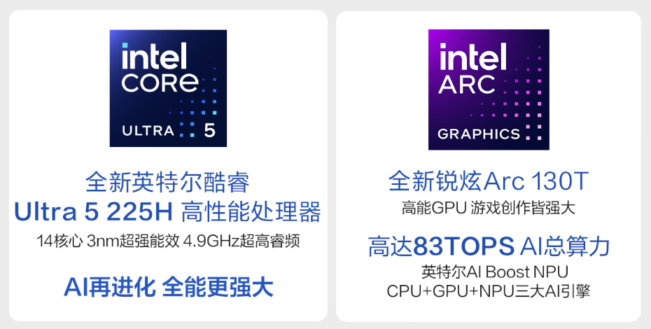 ●硬核实力:酷睿Ultra 5 225H+32GB大内存