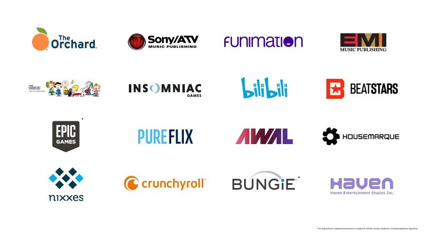 - 增加IP创作的能力:在电视节目制作领域,索尼实施了几次并购,其中包括剧集制作公司。