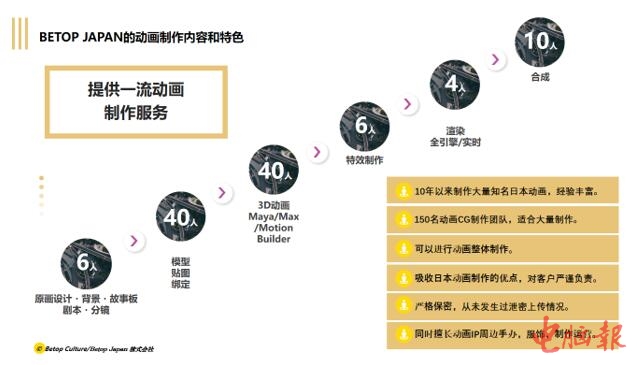 BetopJapan株式会社2011年成立于日本东京,现有设计师150名,一直致力于日本动漫及游戏和影视的3D美术制作行业。并和卡普空/万代南梦宫/史克威尔·艾尼克斯/东映动画/飞碟动画/小学馆等游戏动画公司一直保持密切合作。影视方面 在《最终幻想:王者之剑》《剧场版鬼灭之刃:无限列车编》等知名影视作品里都有我司参与制作。借此参展诚邀有3D美术业务需求的游戏及动画公司莅临展台,以便互相沟通了解。