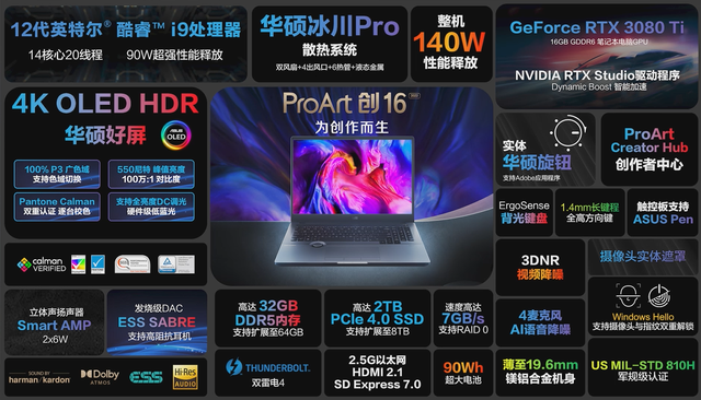 华硕ProArt 创16 2022在性能水准、硬件加速、创意工具、屏幕素质等方面均有非常出色的表现,能为创意设计师们带来更为丰富的创作体验,7月21日正式开售,i9-12900H处理器+RTX 3070Ti+2.5K 120Hz IPS屏到手价13999元。此外,华硕还推出搭载4K OLED华硕好屏+i9-12900H处理器+RTX 3080Ti顶级配置组合首发价格29999元,专为高阶玩家打造。