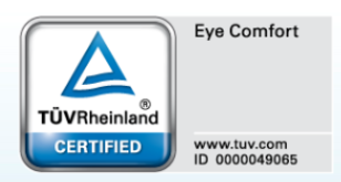 接下来说说莱茵TUV的“防蓝光”认证。其实它的全称是莱茵TUV Eye Comfort认证,也就是眼部舒适度认证。实际上它包括了三大维度:无闪烁、低蓝光、减少反射。其中减少反射方面除了显示器表面材质外,也和显示器的人体工学可视角度调整有关,所以它实际上还涵盖了人体工学方面的功能。