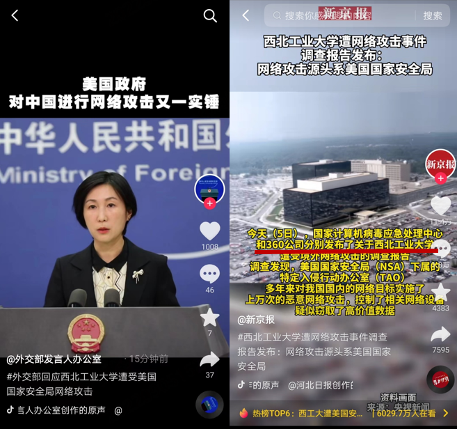 9月5日,外交部发言人毛宁主持例行记者会。有记者提问,日前国家计算机病毒应急处理中心和360公司分别发布了关于西北工业大学遭受美国国家安全局(NSA)网络攻击的调查报告,显示美国国家安全局下属的特定入侵行动办公室(TAO)针对中国的网络目标实施了上万次的恶意网络攻击。请问中方对此有何评论?
