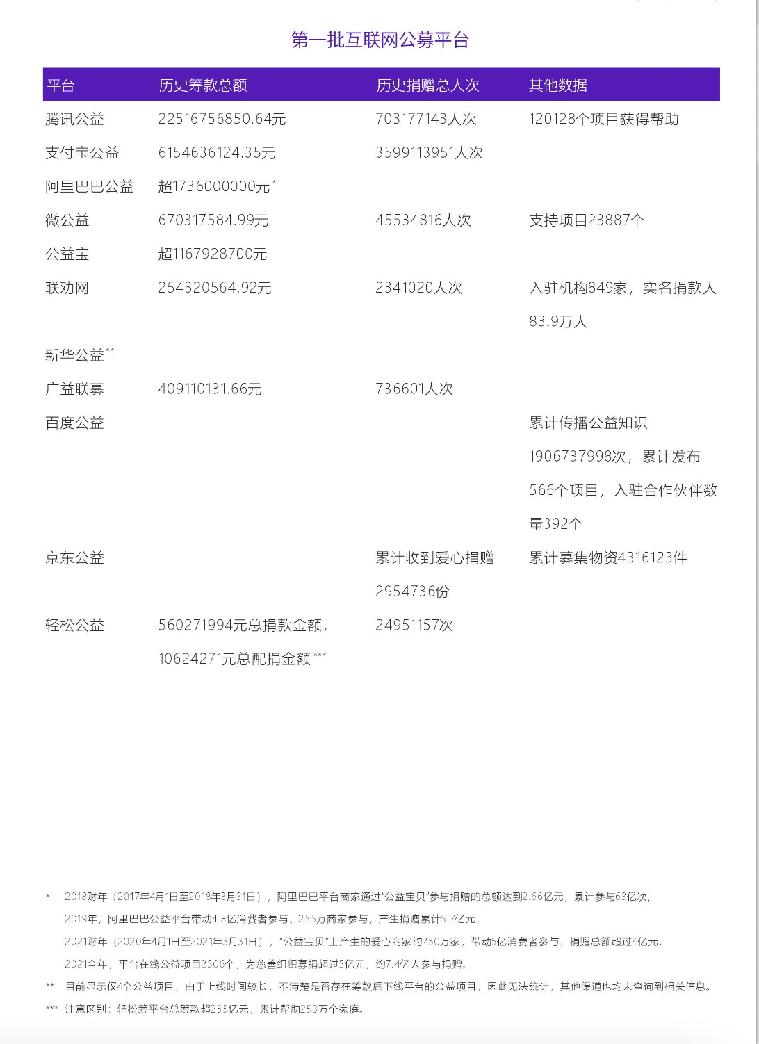 从2016年至今,民政部累计指定慈善组织互联网募捐信息平台32家(其中2家已退出),《中国互联网公益观察报告(2021-2022)》显示,32家平台可统计的历史筹款总额超过360亿元。