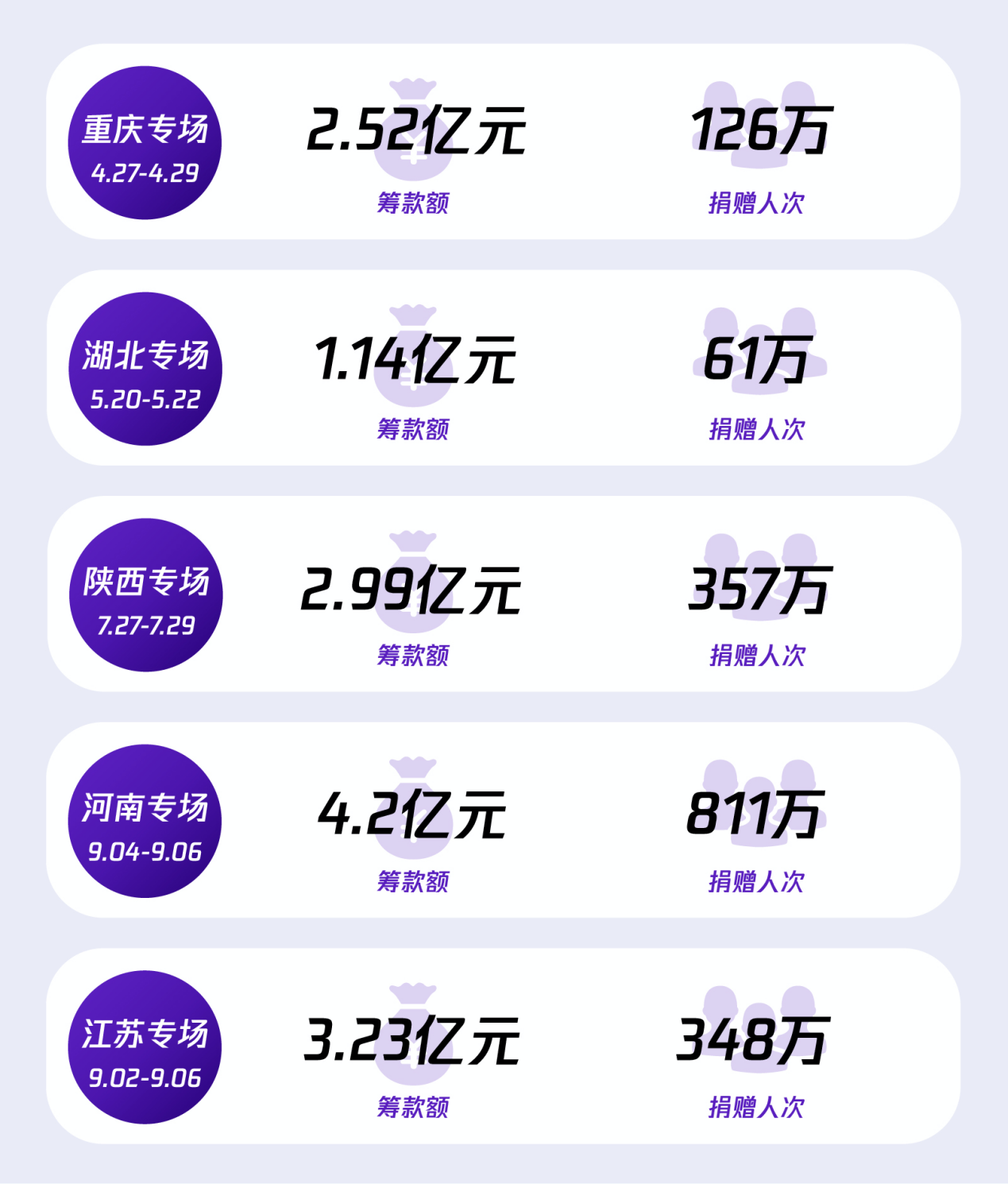 其他地区与互联网公益的合作,同样展现出傲人的发展势头。2018年,河南省慈善总会设立网络募捐部,依托民政部批准的互联网公开募捐平台,在腾讯公益等多个平台累计上线项目2600多个,募捐善款总额达13亿元,帮扶困难群众累计150多万人次。2022年,“乡村振兴·河南专场”公益嘉年华的参与人次超过800万,活动三天筹款金额超过4亿元。