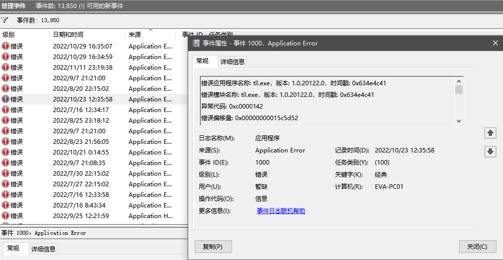这里我们以《神秘海域:盗贼遗产合集》在win10系统打开闪退的问题为例,在右侧的查找工具栏中输入《神秘海域》的进程名称tll定位到相关错误事件,这里的异常代码:0xc0000142是关键信息。经查找资料可知,引起0xc0000142的通常原因是部分DLL文件未能被系统注册,导致动态库调用错误造成的。这种结果的指导意义不大,为了提高效率,可以选择与问题接近的关键词进行搜索,这里我们用关键词“神秘海域 0xc0000142”进行搜索,最终可知,导致tll.exe在打开时闪退的原因是上下级中文文件夹引起的,放到纯英文目录里就好了。