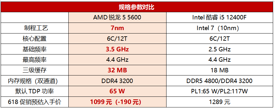 规格PK:看似旗鼓相当,实则锐龙5 5600制程缓存全胜出
