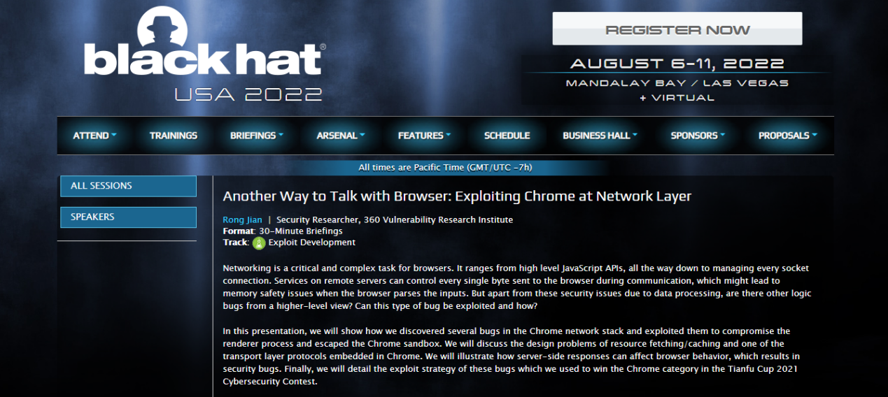 全球著名网络安全峰会BlackHat USA 2022将于今年八月拉开帷幕,在近日公布的演讲阵容中,360政企安全集团共有两大漏洞研究成果成功入选。这也是继不久前在BlackHat Aisa发布两大重磅议题后,360安全专家团队代表中国安全力量,又一次强势亮相世界舞台。